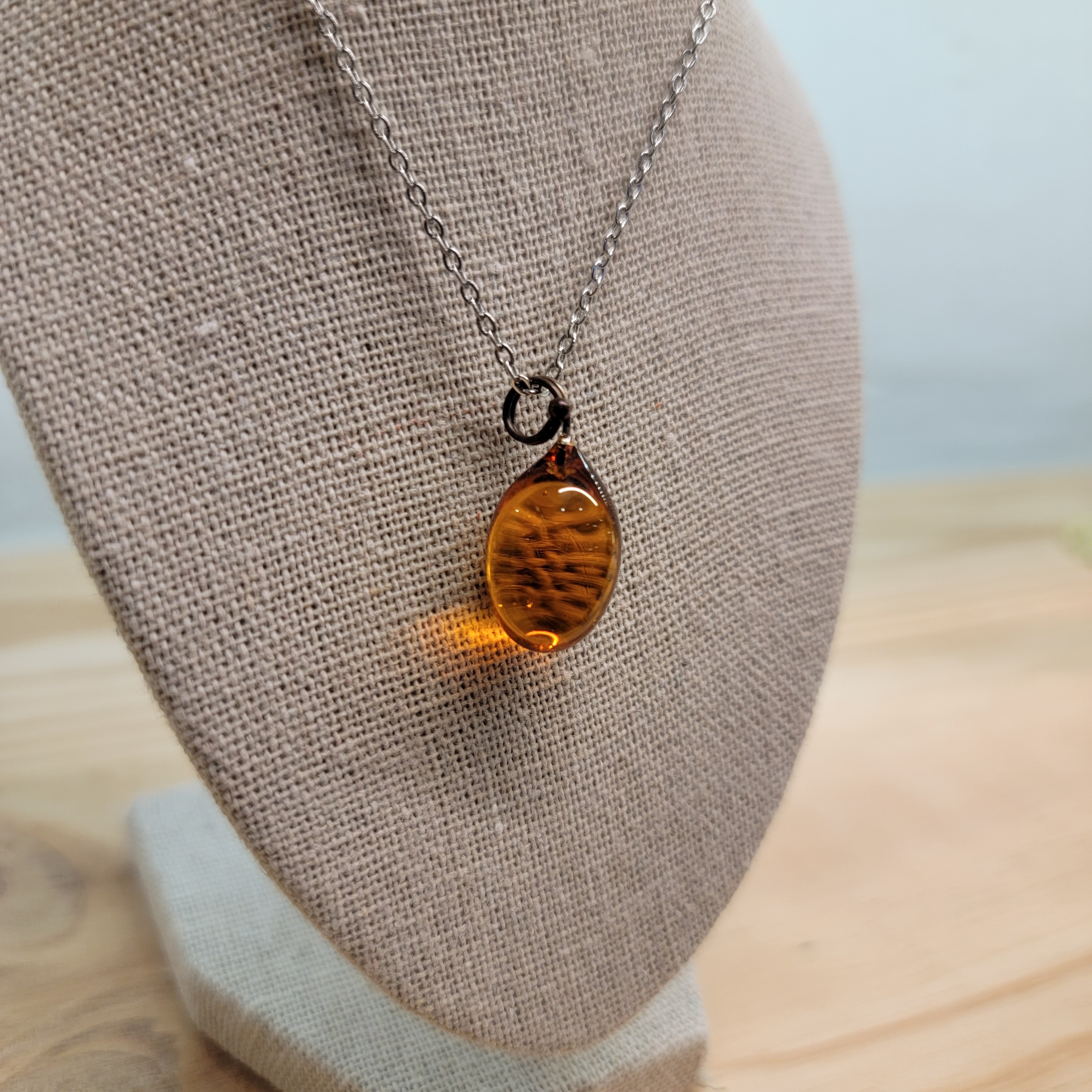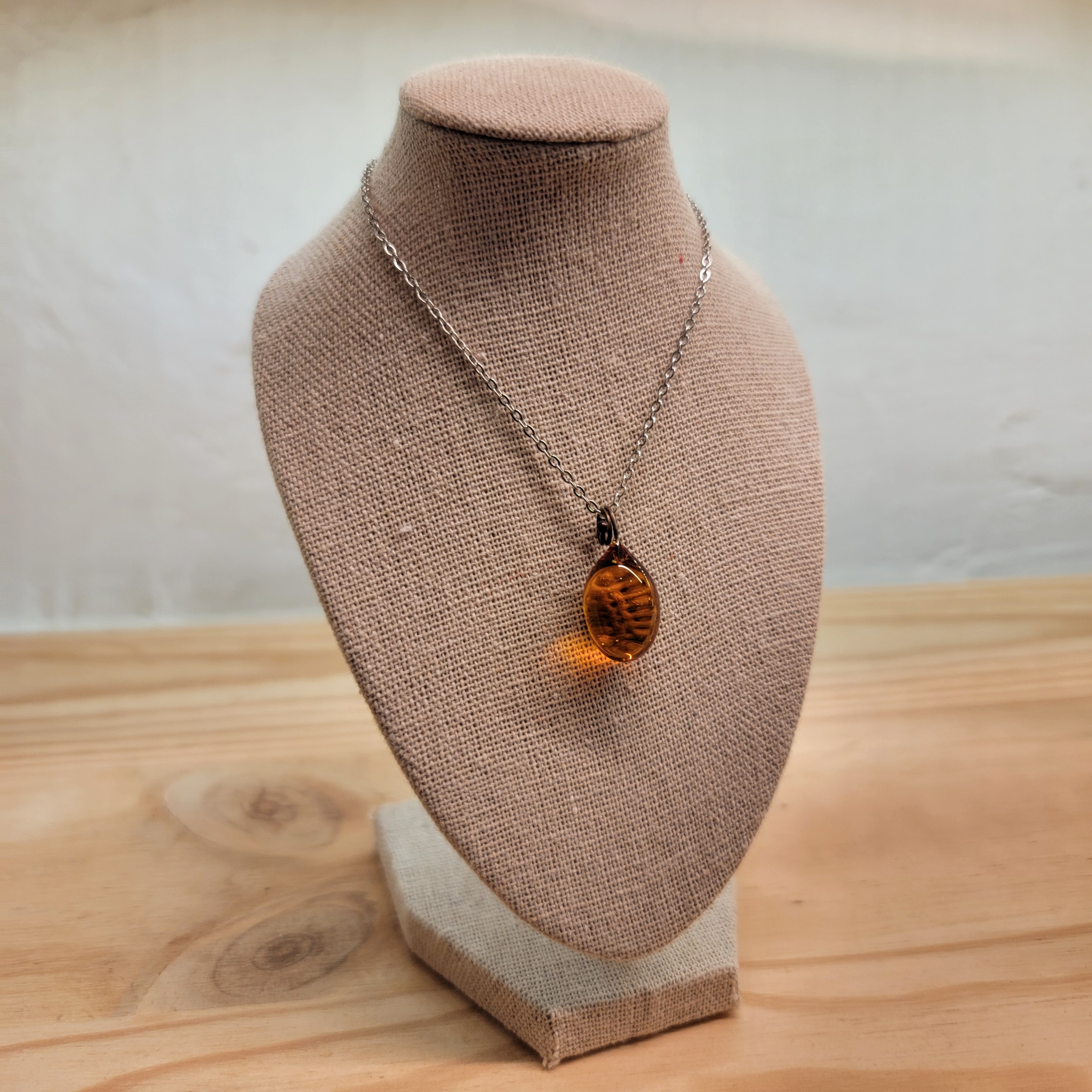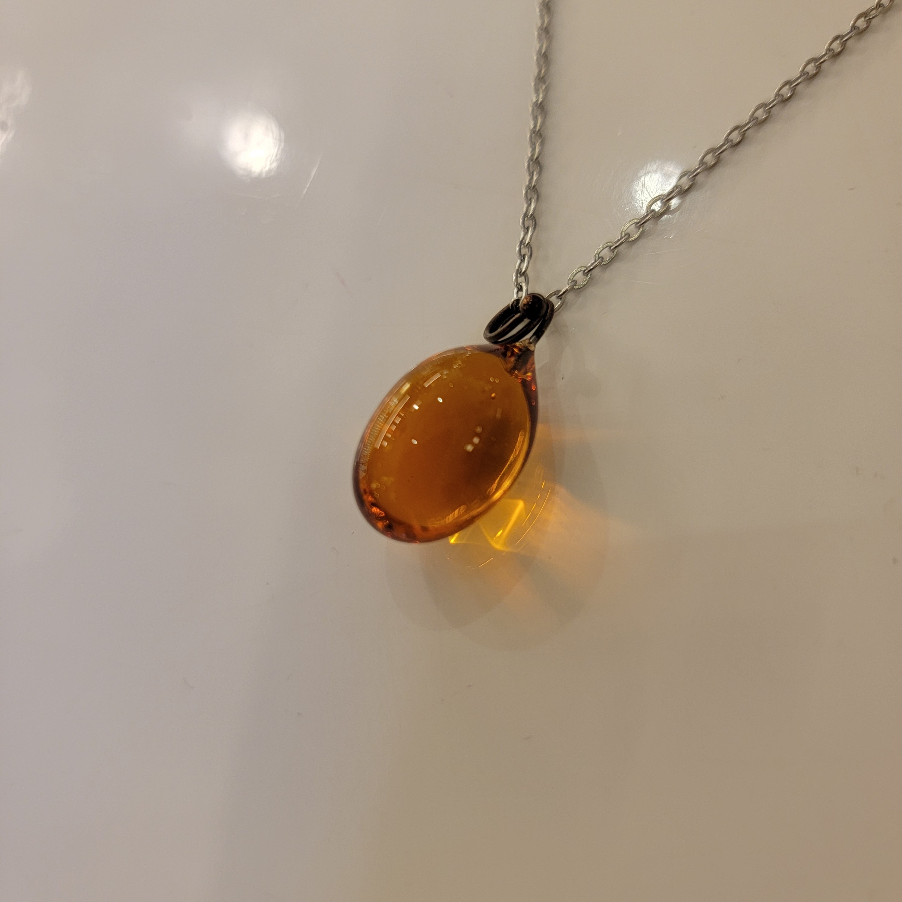 Collier goutte de verre de couleur miel, en verre de Murano.