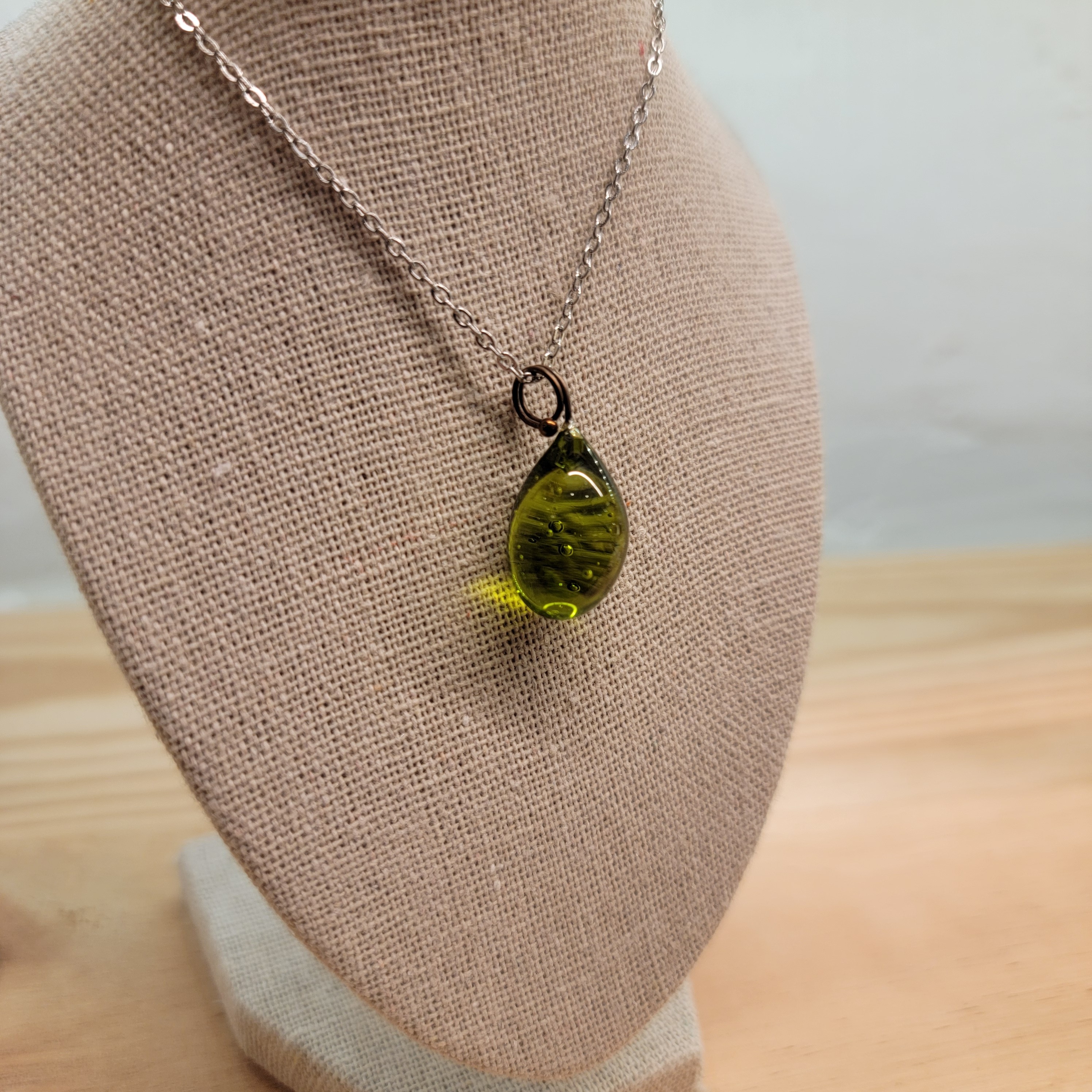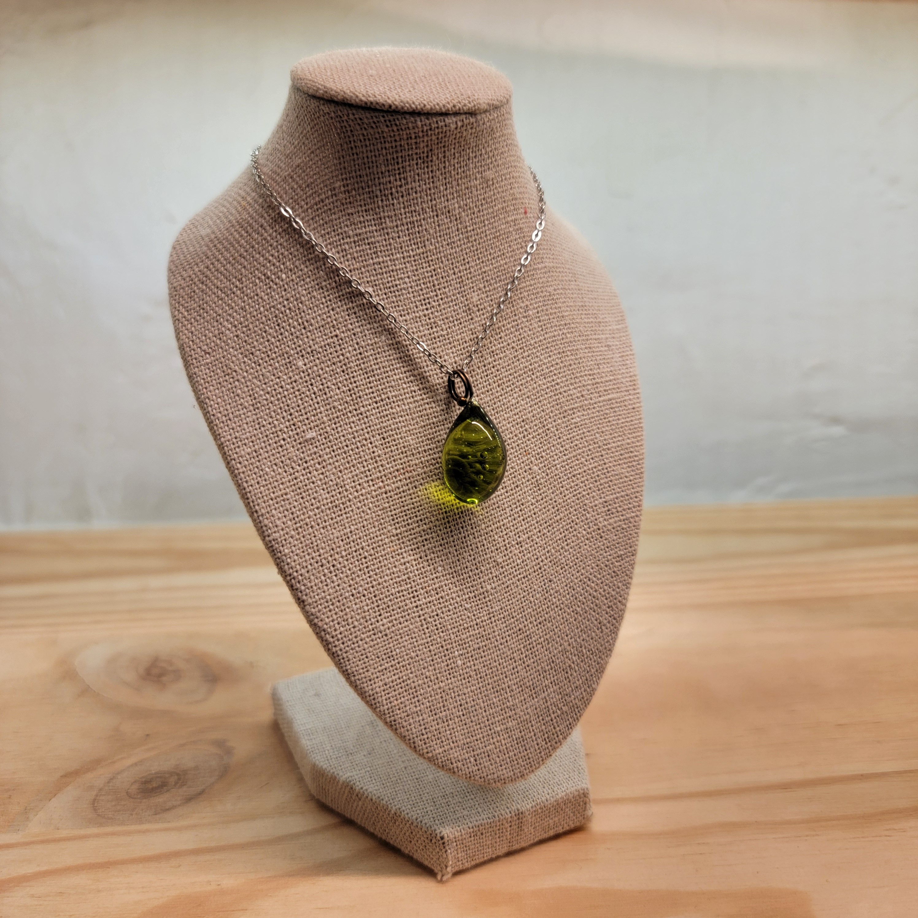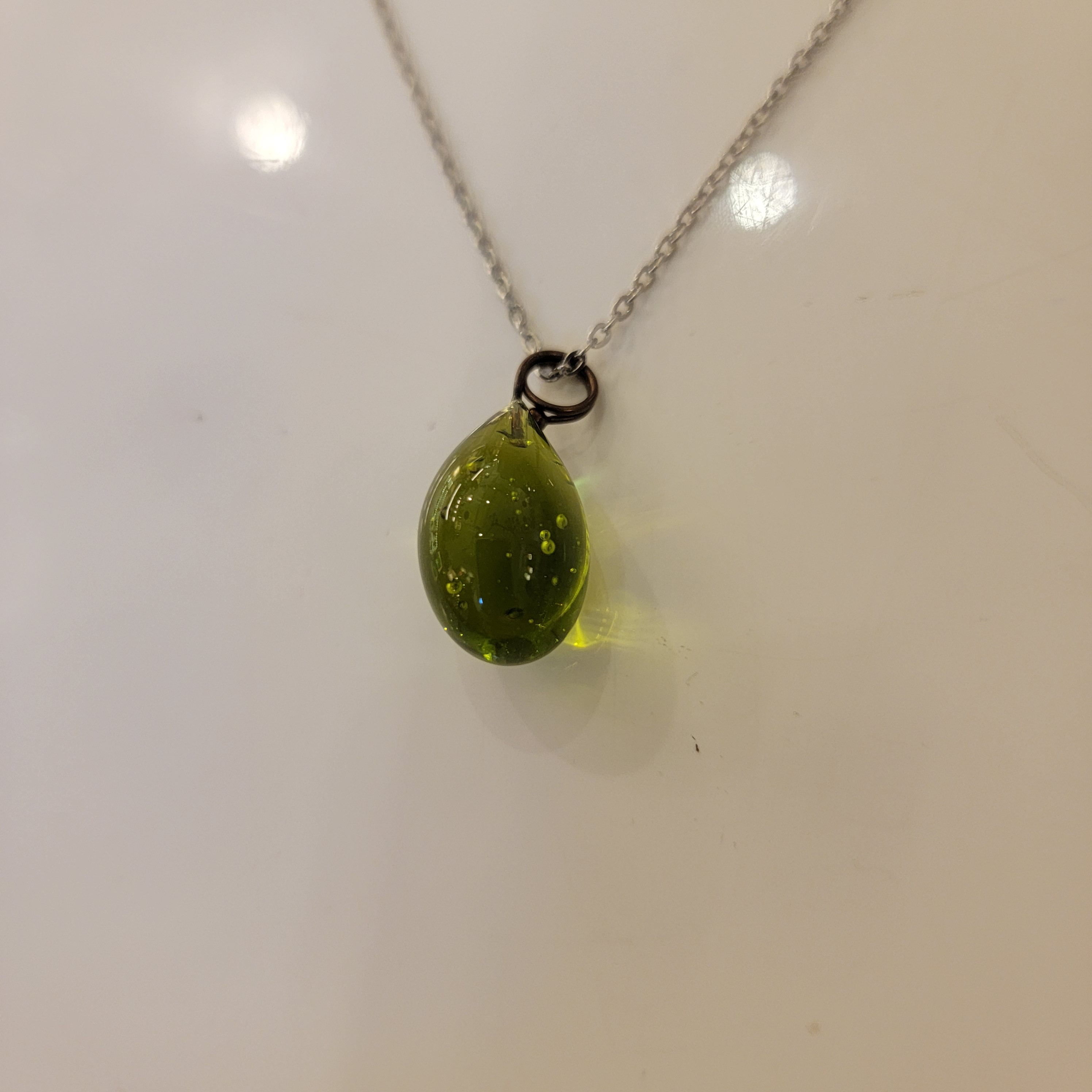 Collier goutte, perle de verre de Murano - Vert clair.