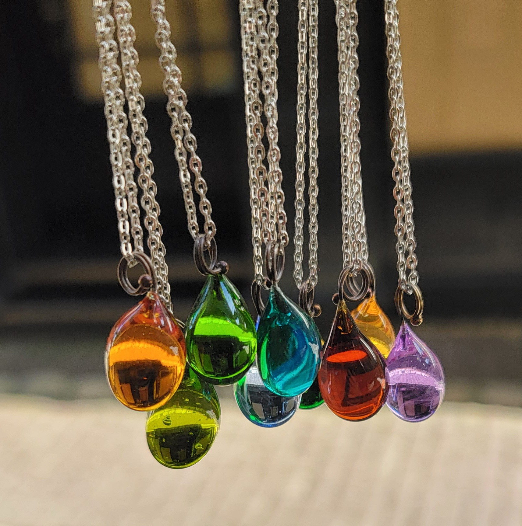 Longueur du pendentif : 2,5cm (goutte = 1,8cm de long et 1, 05cm de diamètre au plus large).
