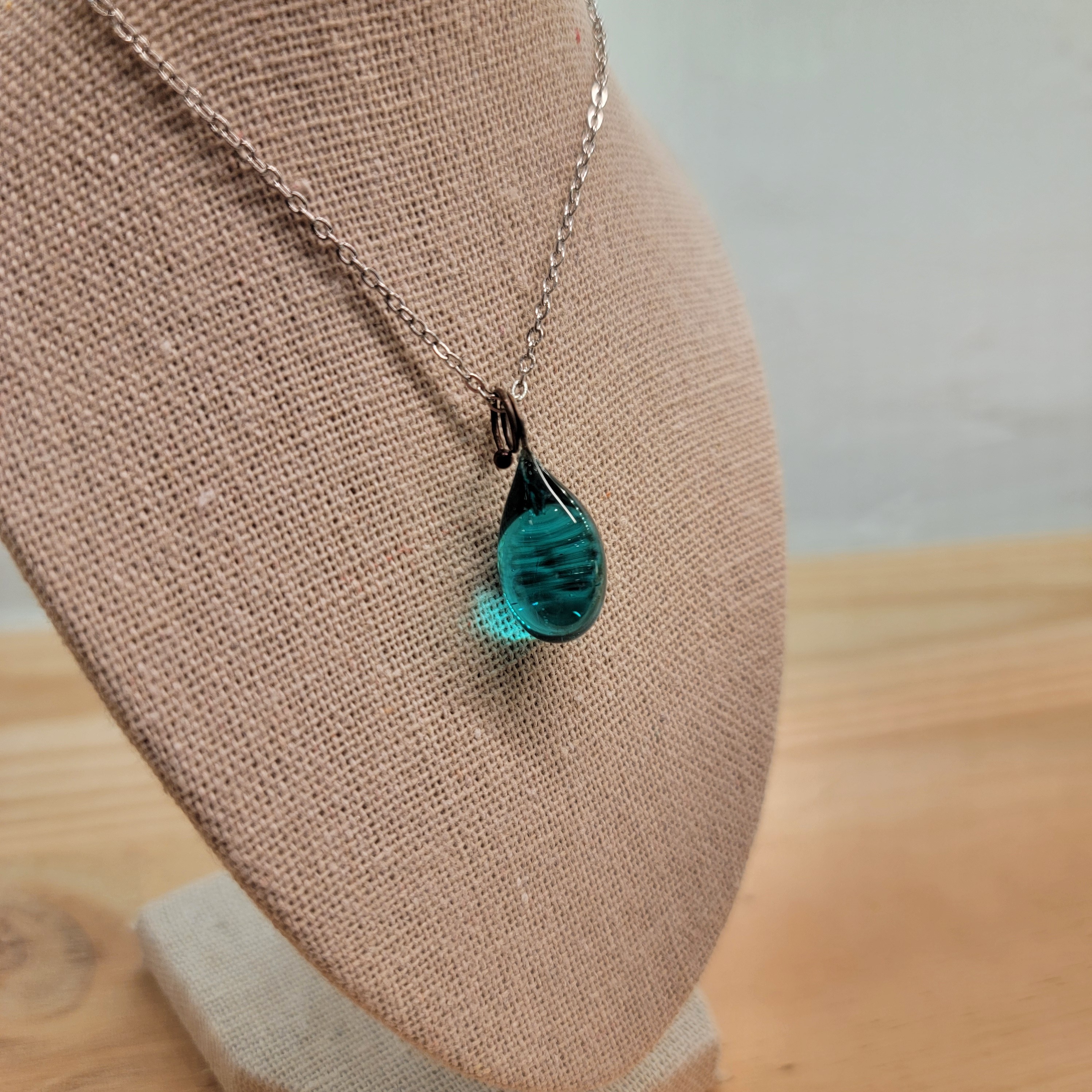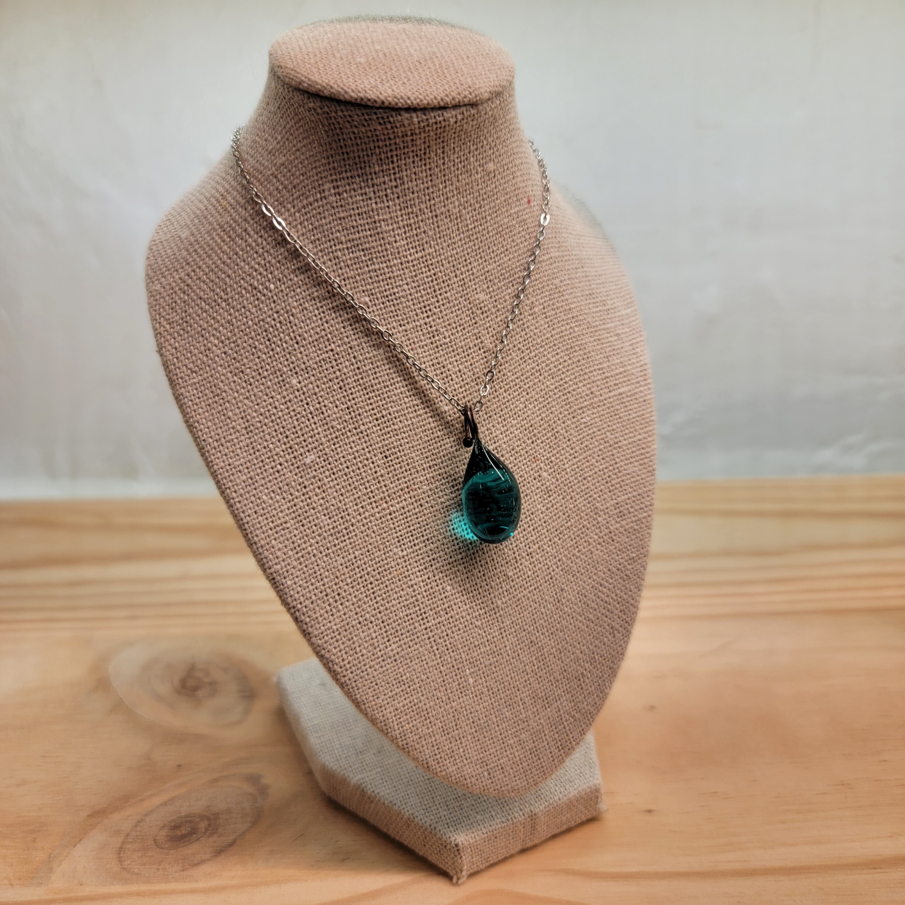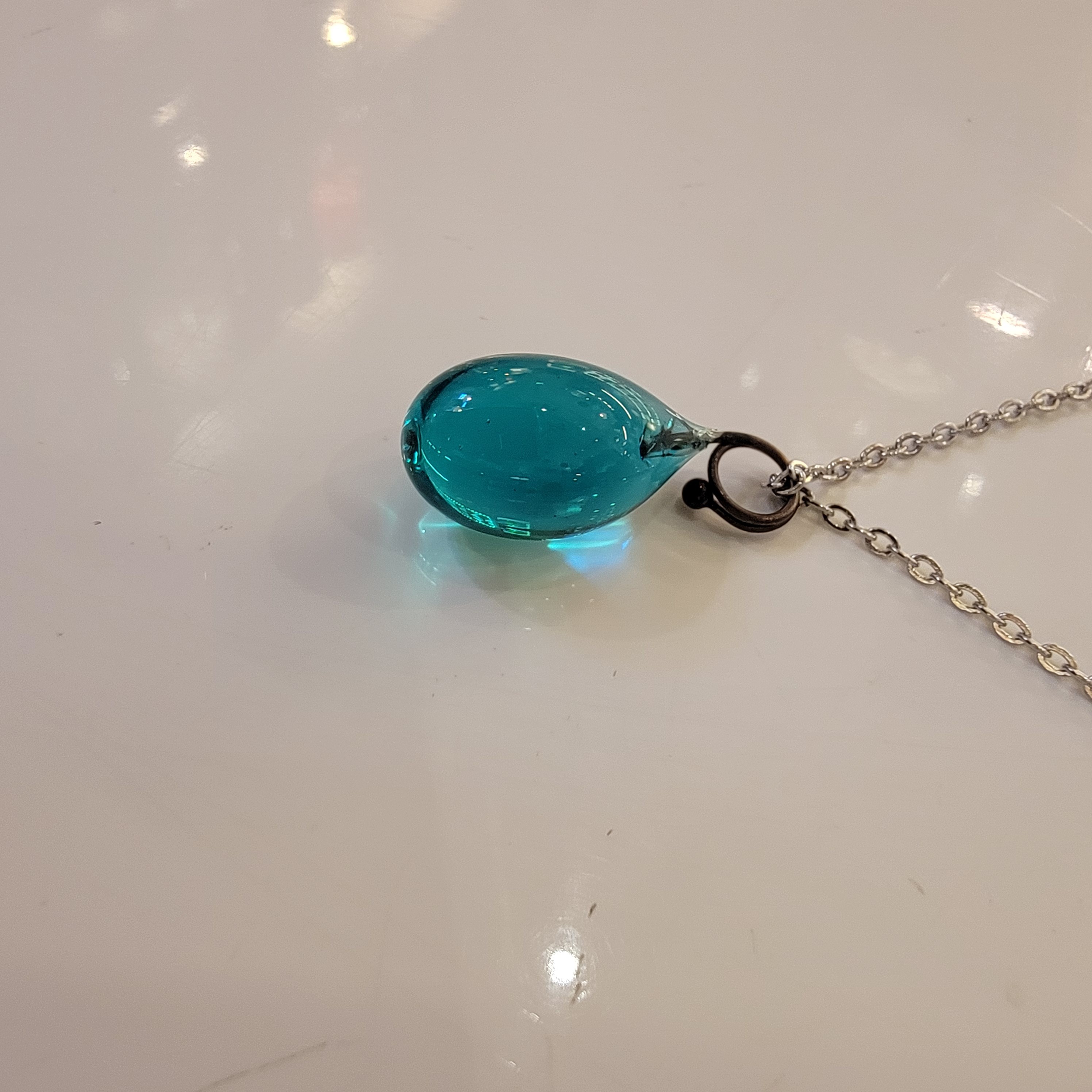 Collier goutte, perle de verre de Murano - Turquoise.